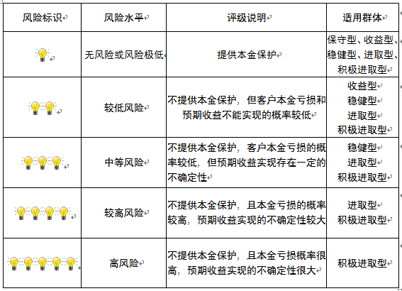 本产品为非保本浮动收益型理财产品,不保证本金和收益,请您充分认识投资风险,谨慎投资。本期产品期限为42天(中国建设银行有权对产品进行展期或提前终止),存续期内,产品不接受申购或赎回申请。本期产品内部风险评级级别为盏警示灯,风险水平属于较低风险。最不利情况下,您将损失全部收益甚至包括全部本金。本理财产品适用于收益型、稳健型、进取型 积极进取型客户。