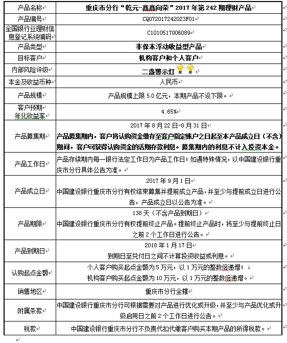 2017年第242期理财产品说明书