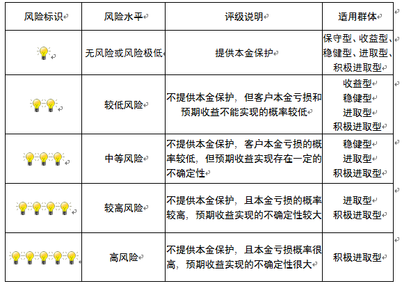 本产品为非保本浮动收益型理财产品,不保证本金和收益,请您充分认识投资风险,谨慎投资。本期产品期限为40天(中国建设银行有权对产品进行展期或提前终止),存续期内,产品不接受申购或赎回申请。本期产品内部风险评级级别为盏警示灯,风险水平属于较低风险。最不利情况下,您将损失全部收益甚至包括全部本金。本理财产品适用于收益型、稳健型、进取型 积极进取型客户。