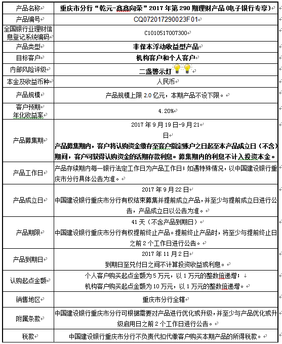 3.中国建设银行重庆市分行可根据市场情况等调整产品规模上、下限,并最迟于调整规模上下限当日进行公告。