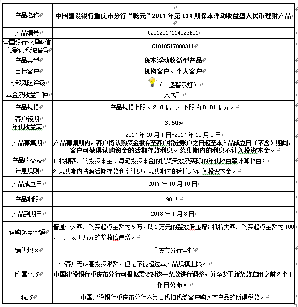 中国建设银行重庆市分行“乾元”2017年第114期