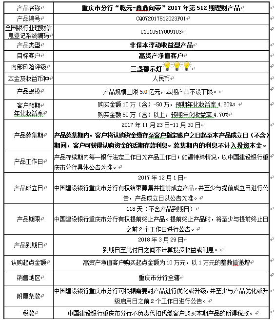 2017年第512期理财产品说明书