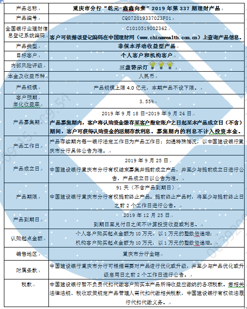 3.中国建设银行重庆市分行可根据市场情况等调整产品规模上、下限,并最迟于调整规模上下限当日进行公告。