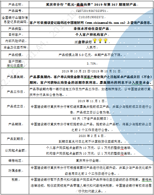 3.中国建设银行重庆市分行可根据市场情况等调整产品规模上、下限,并最迟于调整规模上下限当日进行公告。