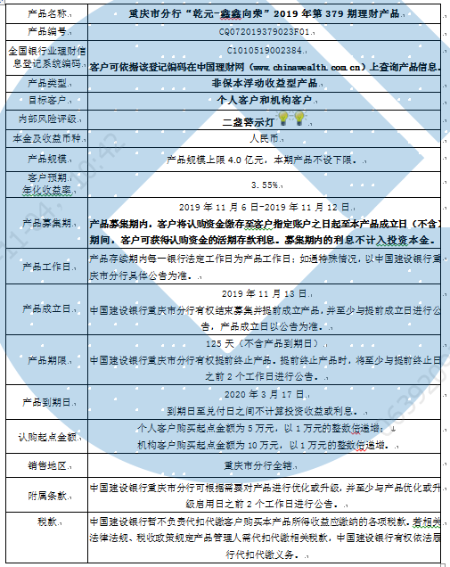 2019年第379期理财产品说明书