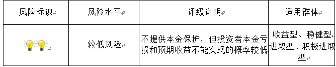 本产品内部风险评级级别为两盏警示灯,风险程度属于较低风险。产品适合于收益型、稳健型、进取型及积极进取型客户。最不利情况下,基础资产无法回收任何本金和收益,客户将损失全部本金。客户不得使用贷款、发行债券等筹集的非自有资金投资本产品。